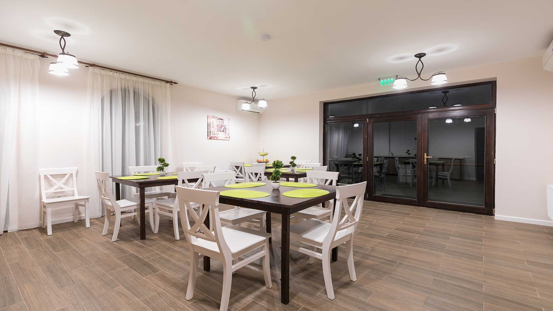 In plus Pensiunea dispune de o sala de mese si o terasa unde se serveste micul dejun.